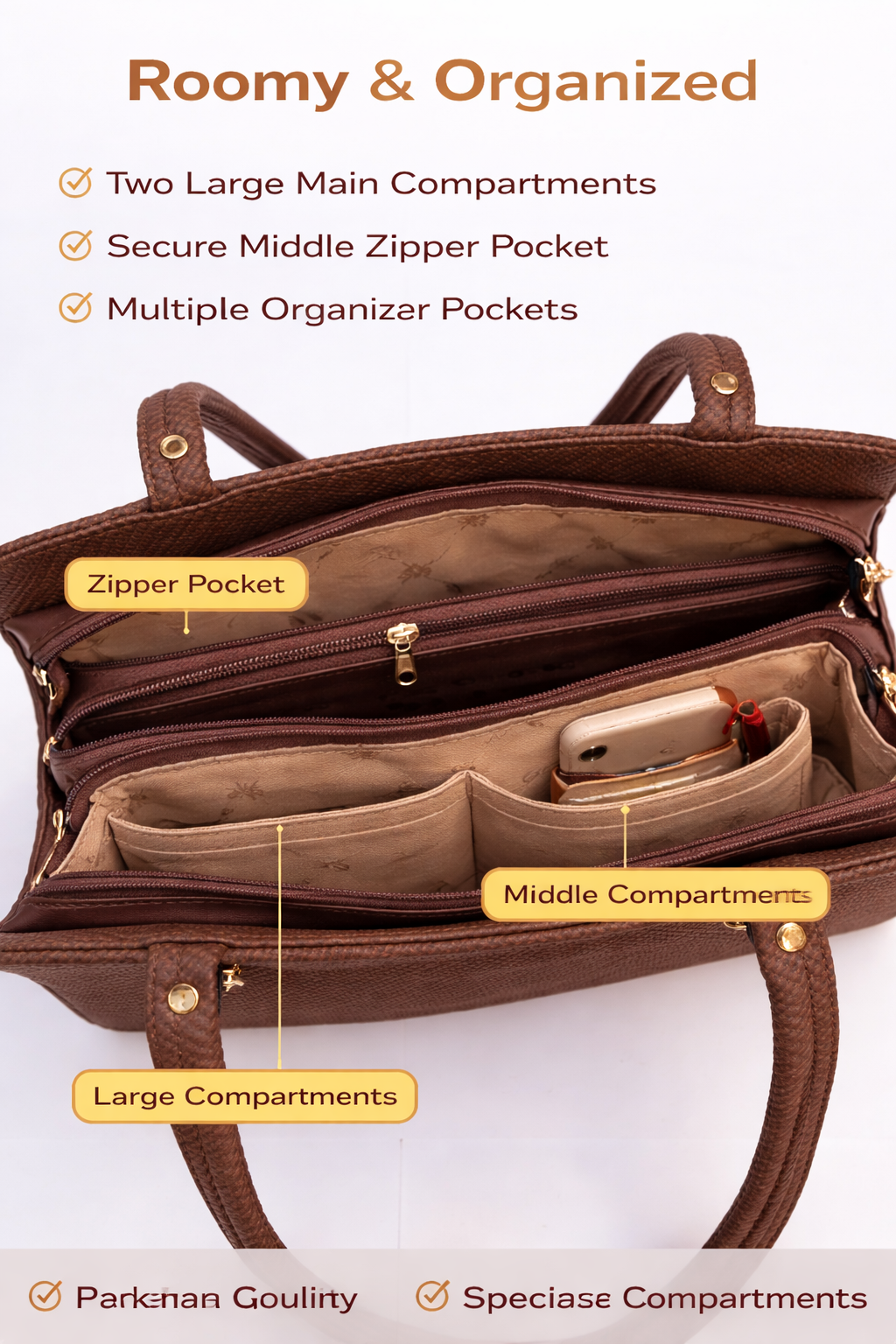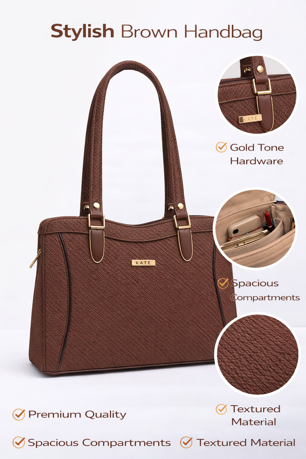 Elevate your everyday style with this stylish brown handbag, designed to offer the perfect balance of elegance, comfort, and functionality. Crafted from premium textured material and enhanced with gold-tone hardware, this handbag is ideal for office wear, casual outings, and daily use.